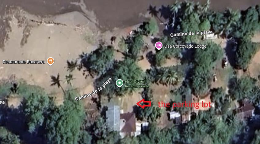 Most people leave their car at a local lady’s house where “Osa Divers” is on Google Maps. She charges around 3000 CRC for the day – cash only. Best to pay in local currency.
